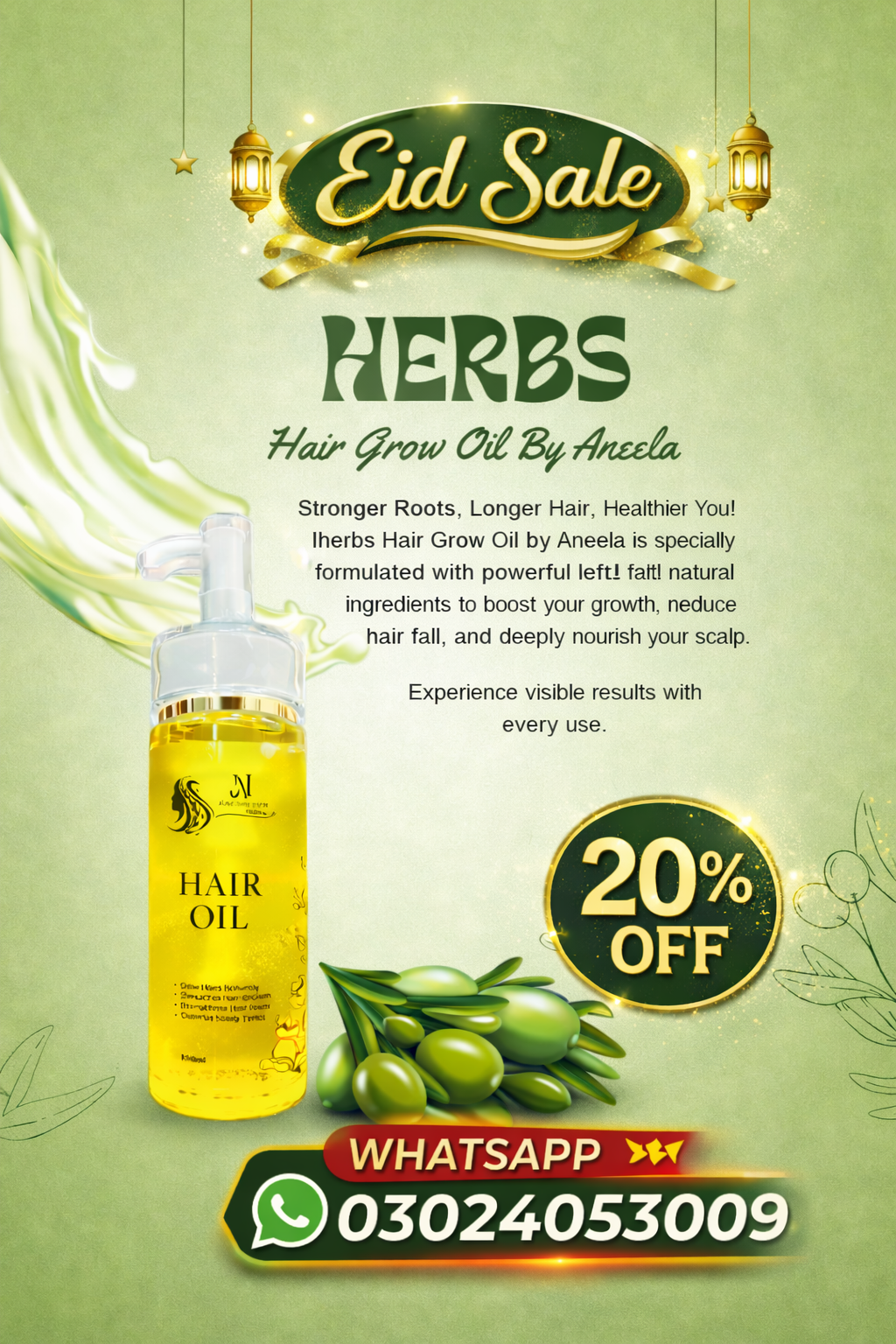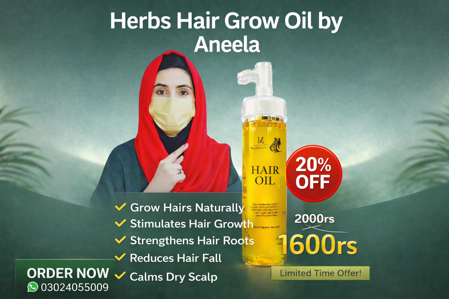 Aneela’s Herbal Hair Grow Oil With 1Head Massager And 1 Press On Aring Set Free